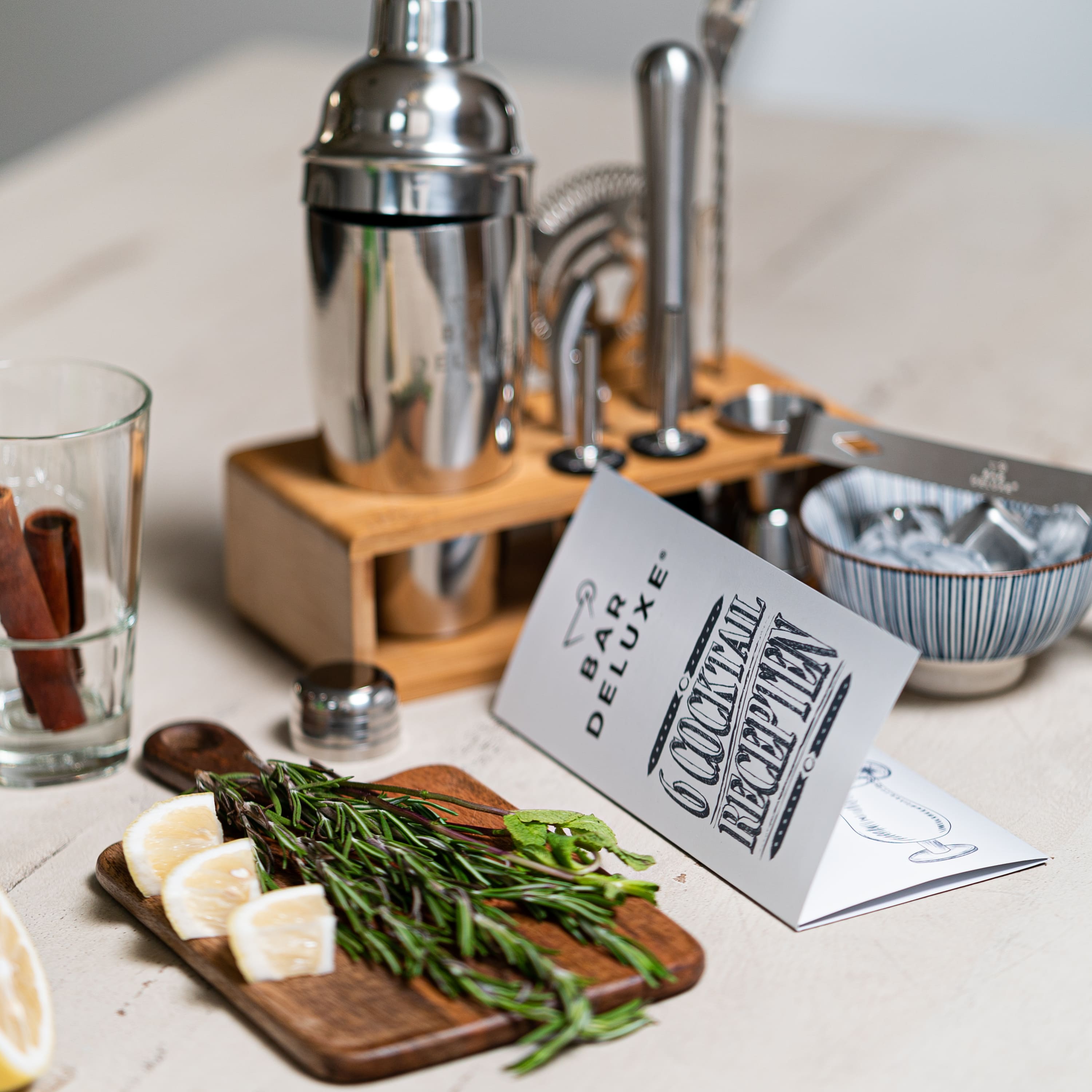 Avec un kit barman de BarDeluxe®, vous pouvez vous immerger dans des saveurs exotiques et préparer de délicieux cocktails tels qu’un Mojito, un Cosmopolitan ou une Piña Colada. L'ensemble à cocktail est livré avec un livre de recettes gratuit.